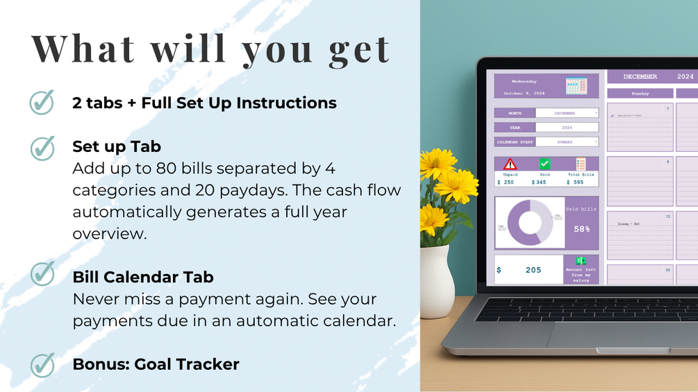 Stay on top of your finances with our easy-to-use Bill Tracker template! This versatile tool features two essential tabs—Set Up and Monthly Calendar—designed to streamline your bill management process.